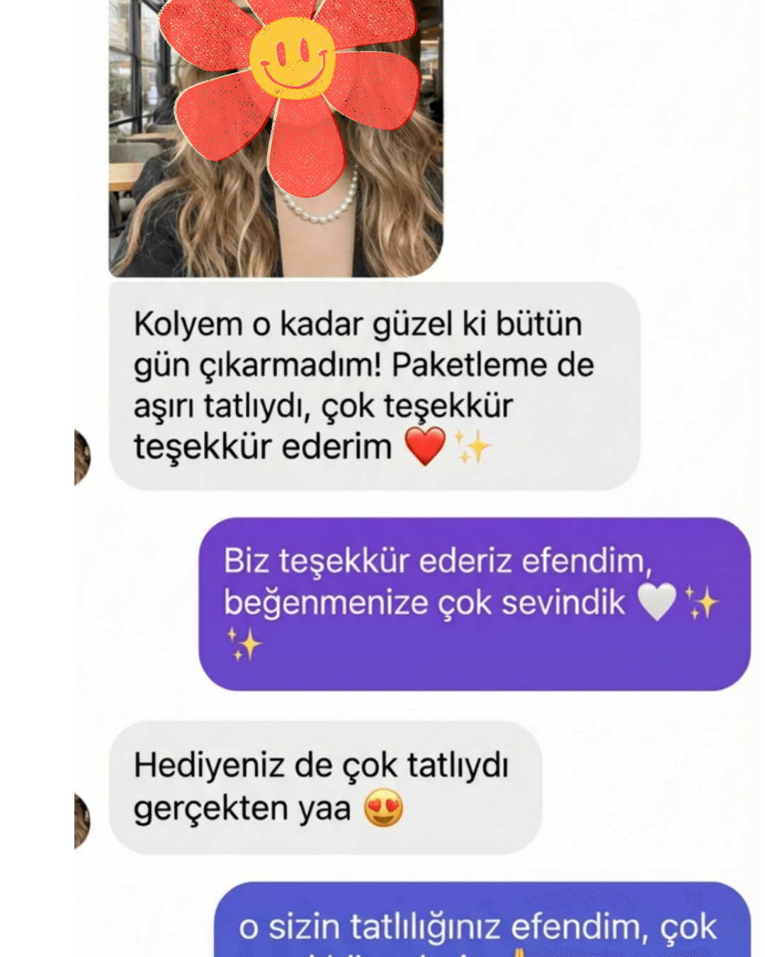 Kolye tam bir prenses kolyesi. İnci tanelerinin parlaklığı ve kullanılan aparatlar çok parlak. Günlük kombinlerde bile şıklık katıyor.