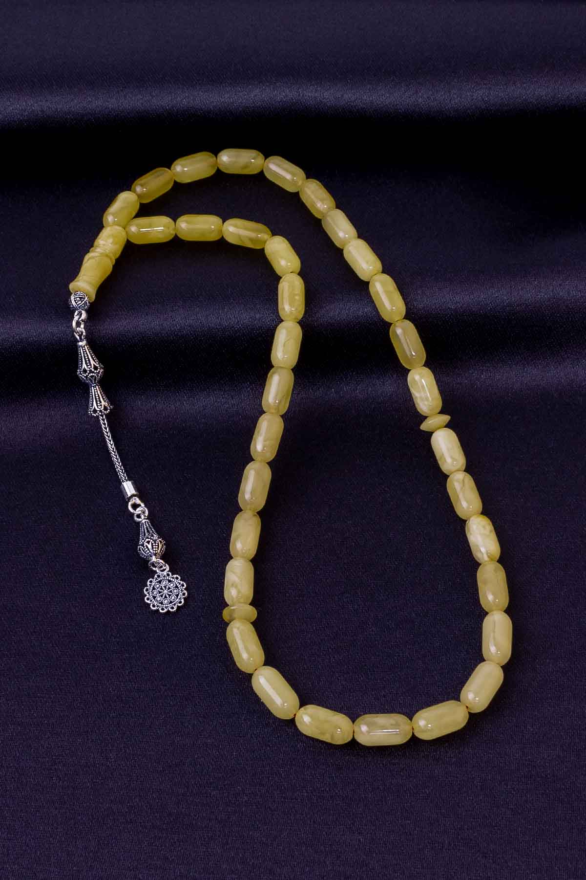 Sertifikalı Damla Kehribar Tesbih (925 Ayar Gümüş Aparatlı)
