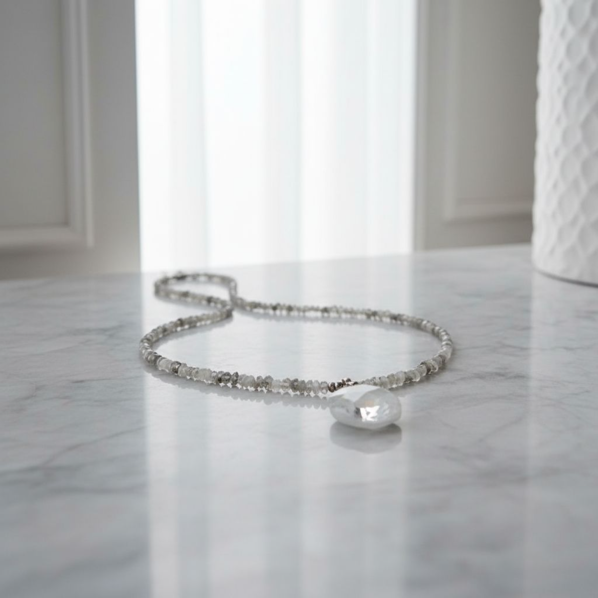 Her boncuk tek tek dizilir; taşların doğal dokusu, tonu ve ışığı korunarak tasarıma dahil edilir.