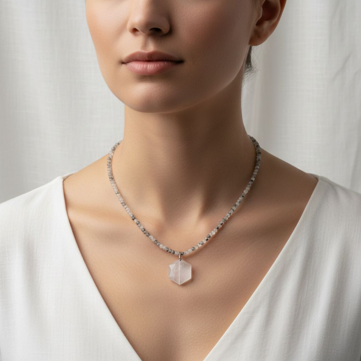 Her boncuk tek tek dizilir, her detay özenle tamamlanır; taşların doğal dokusu korunur, ışıltısı kaybolmadan zarafetle bir araya getirilir.