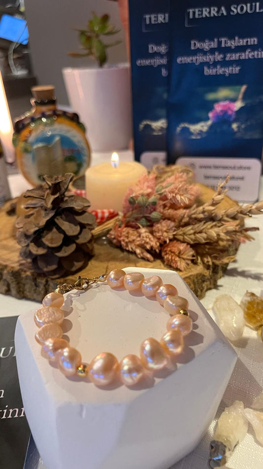 Gerçekten beklediğimden çok daha şık duruyor. Kare incilerin doğal parıltısı bilekte çok zarif .