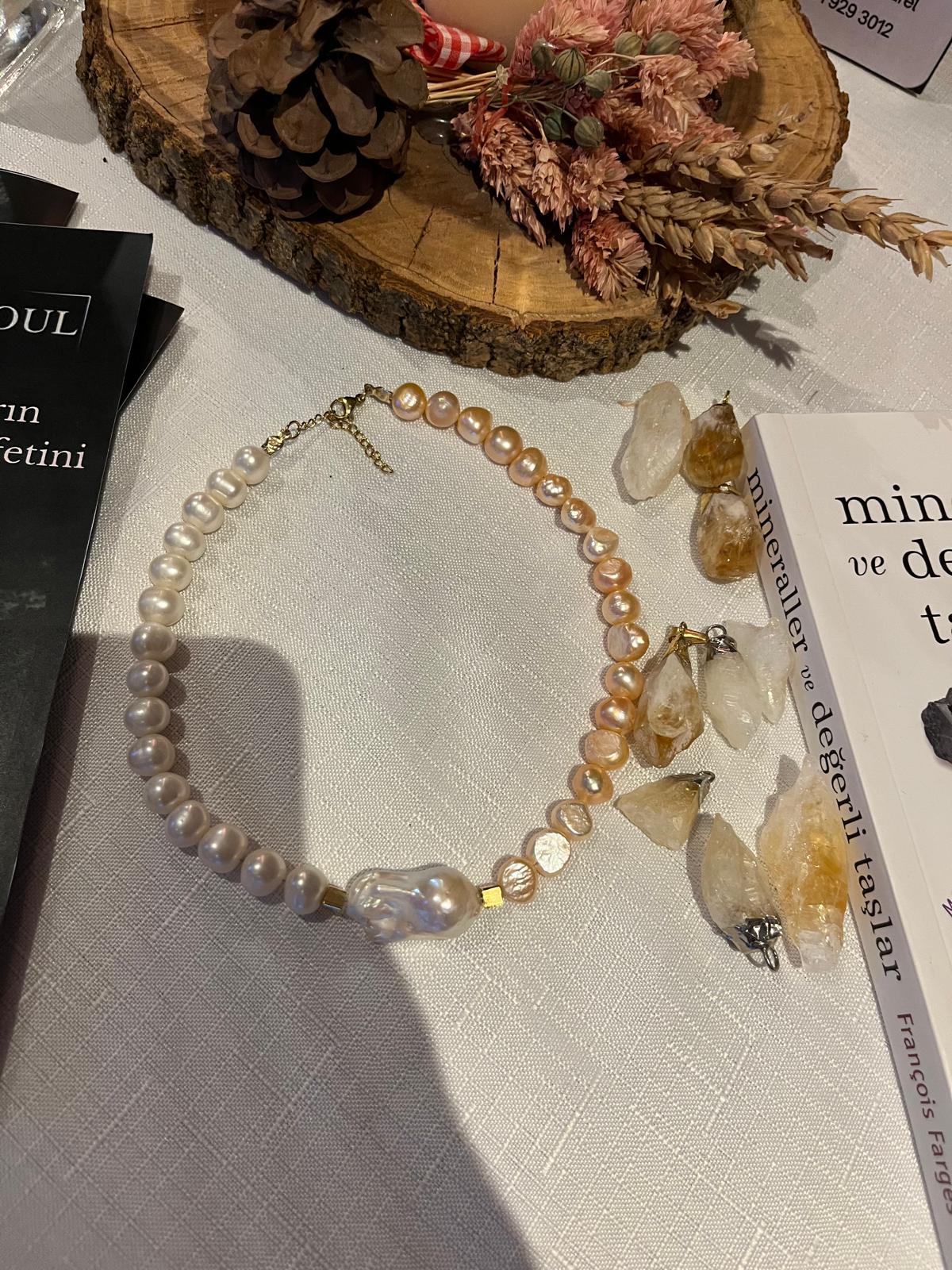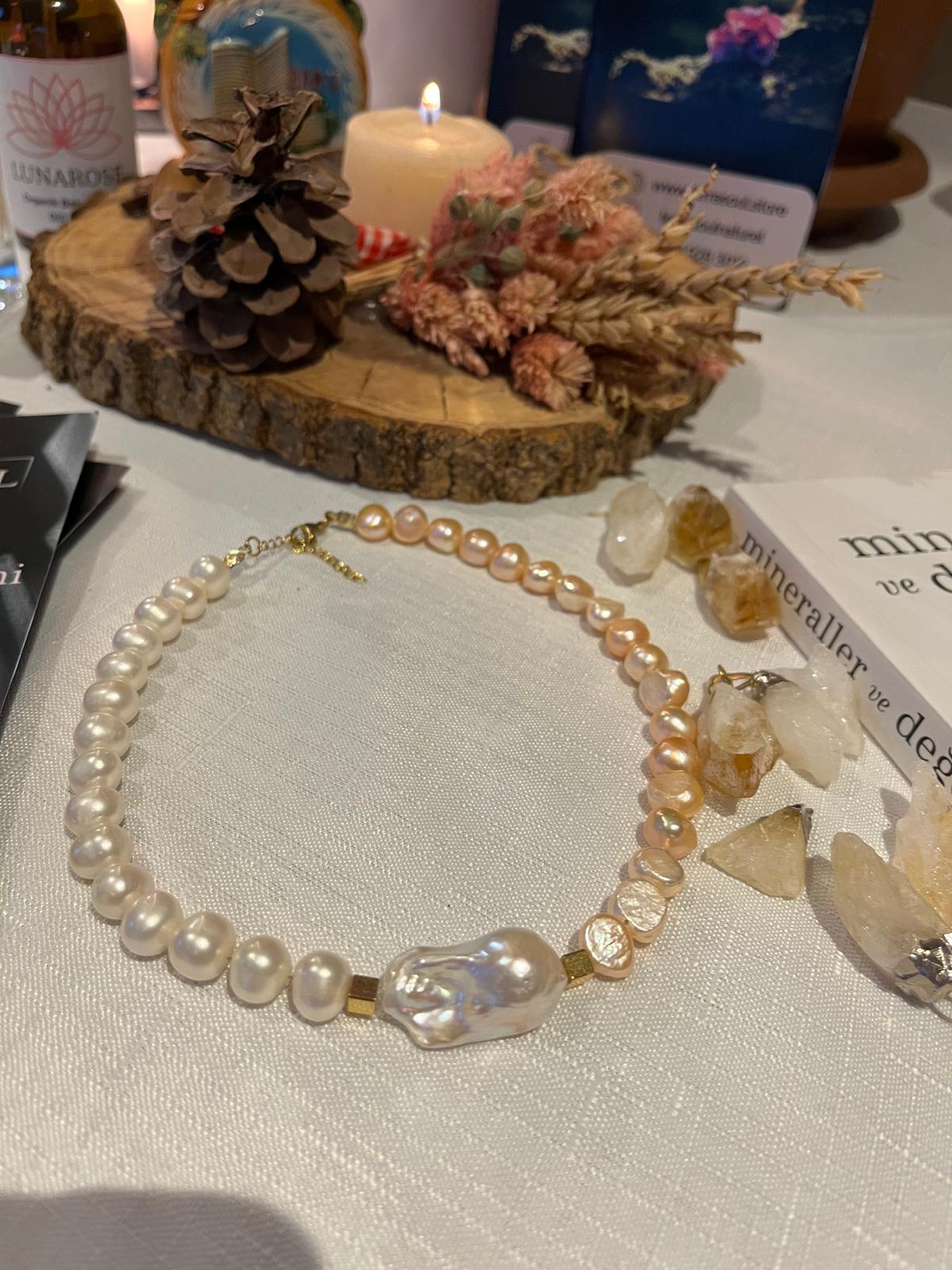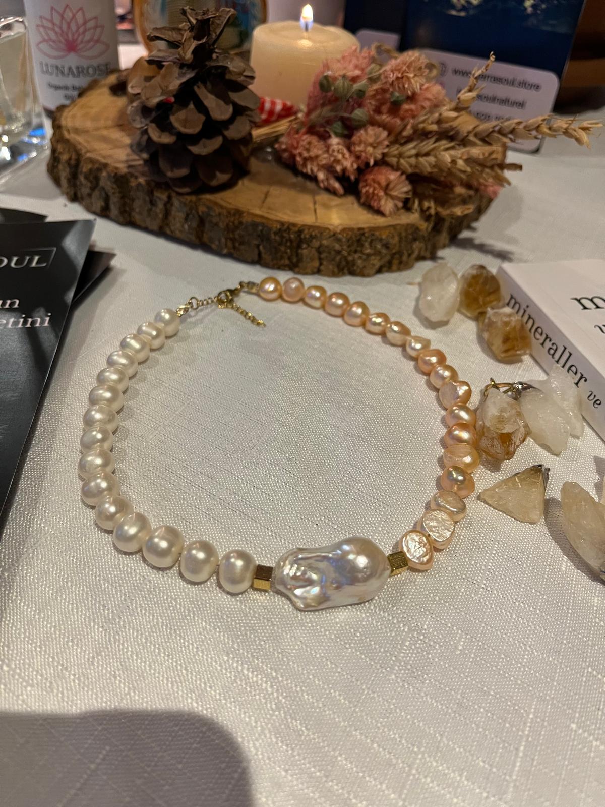 Kolye tam bir prenses kolyesi. İnci tanelerinin parlaklığı ve kullanılan aparatlar çok parlak. Günlük kombinlerde bile şıklık katıyor.