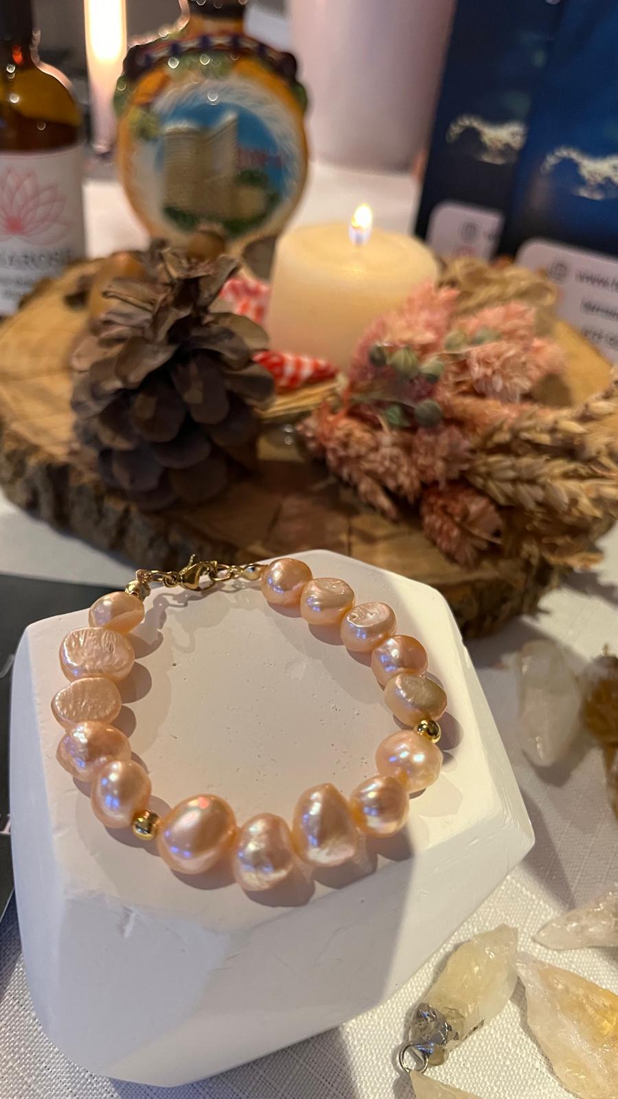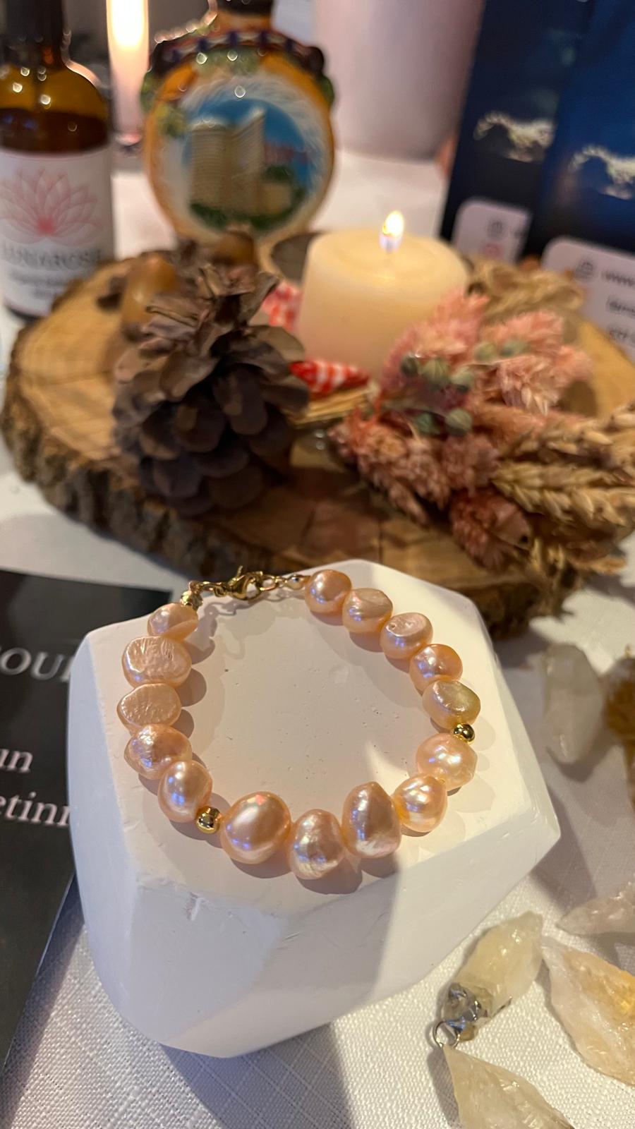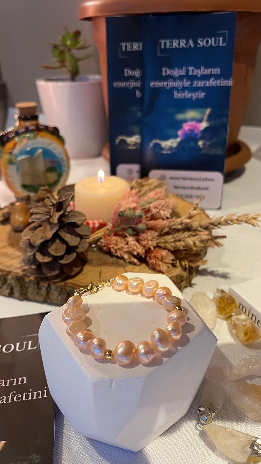 Gerçekten beklediğimden çok daha şık duruyor. Kare incilerin doğal parıltısı bilekte çok zarif .