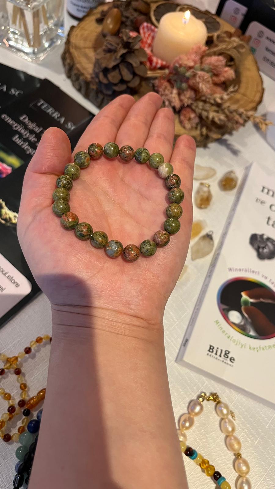 Bilekliğin doğal yapısı ve taşların dokusu gerçekten çok hoş. Hem günlük hem de iş ortamında rahatlıkla kullanıyorum.